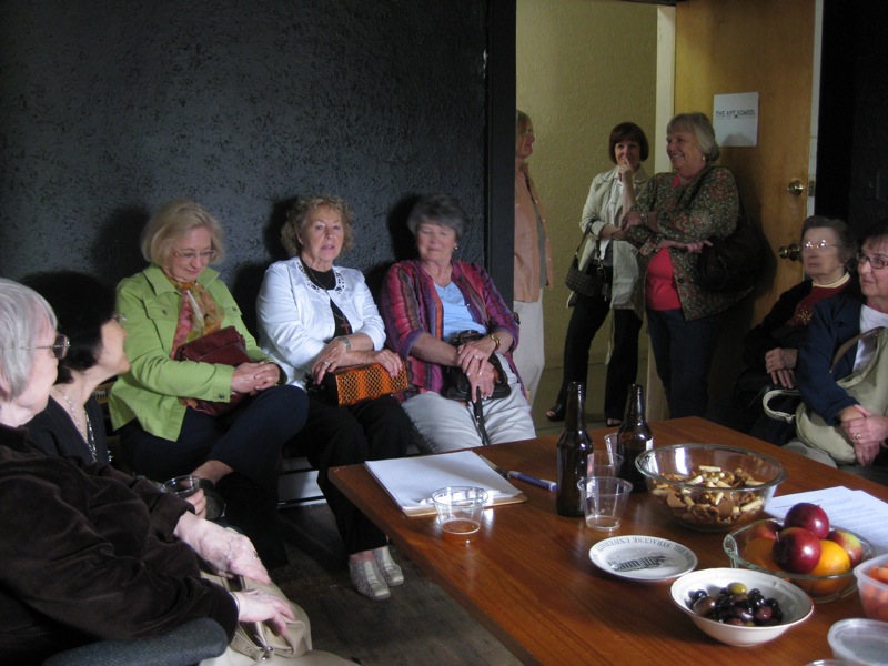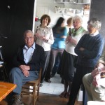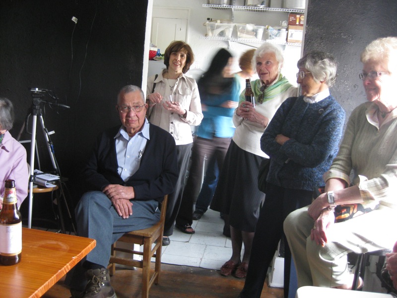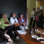 Today, a great group of people came to visit the AS. They were touring the art scene in Syracuse, led by artist Susan D’Amato. We drank some Art Beer, and then recorded an excerpt of the radio play “The Man Who Was Thursday,” originally produced by Orson Welle’s Mercury Theatre. Everyone was a great sport, both about being squished into our small space, and in doing a great reading.